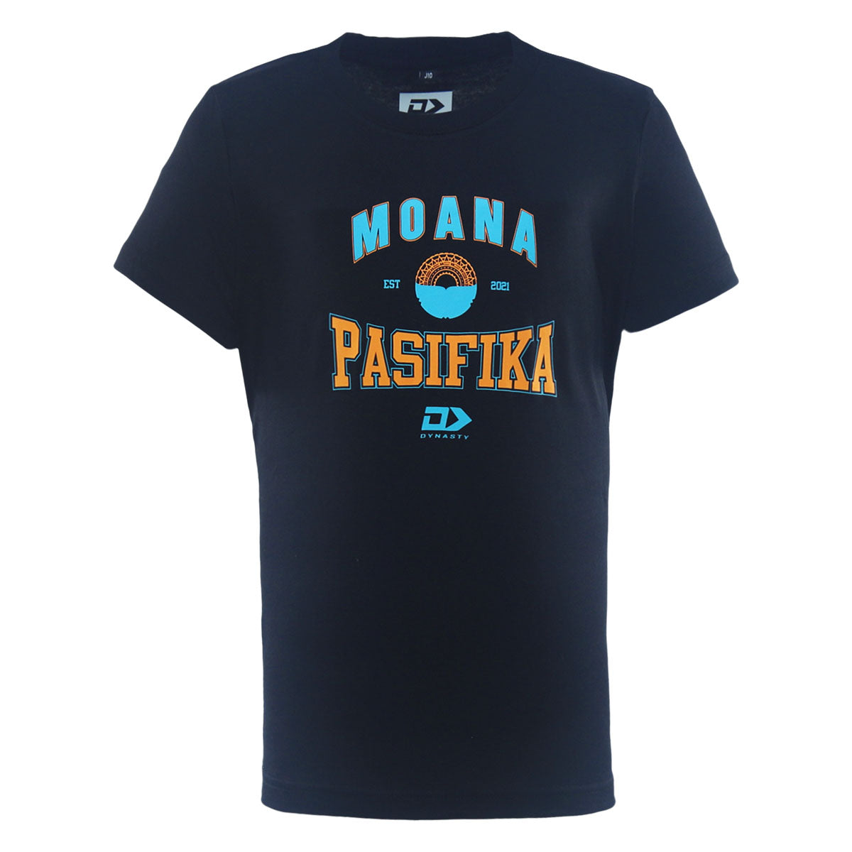Be the envy of your mates in this Moana Pasifika ‘must have’ this year. Black lifestyle tee with a bold screen-printed chest graphic in teal and orange for a clean, confident statement. Finished with a ribbed collar and twin-needle hem for a quality everyday fit.