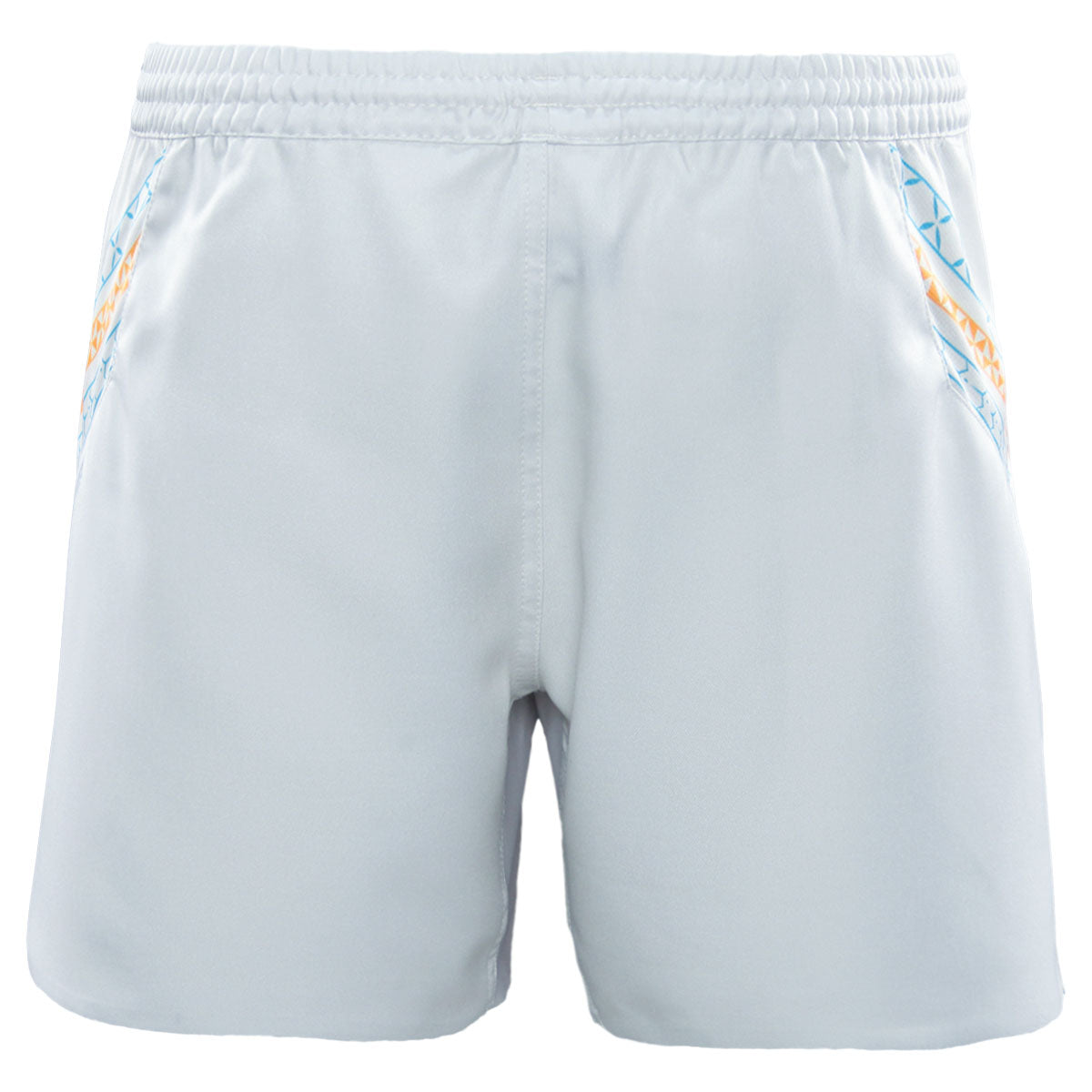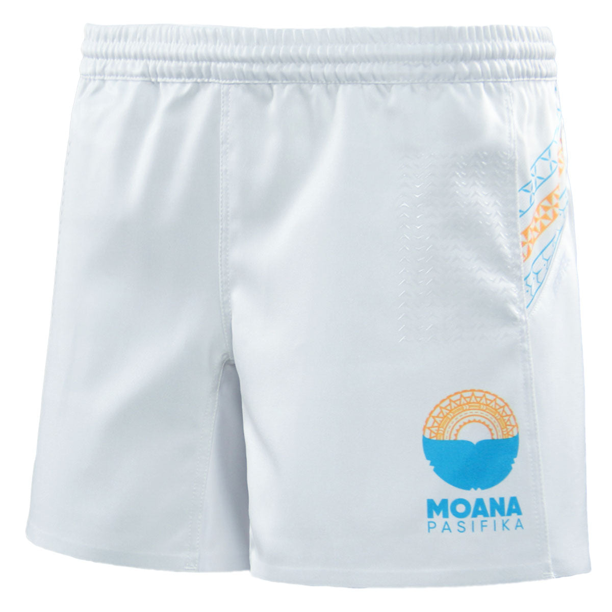 Clean beige base with teal hits and Pasifika band detailing to tie back to the home kit. Playersfitwith drawcord waist, lycra gusset for mobility, sublimated side panels andlogosfor a sharp on-field finish.